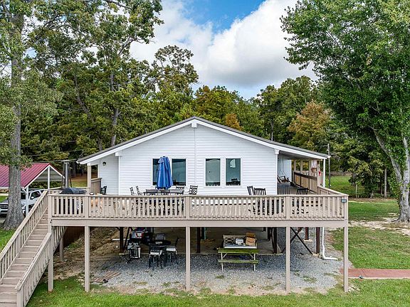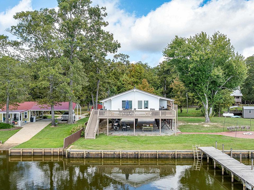 Stunning Lakefront Retreat on Lake D'Arbonne! Escape to tranquility with this beautifully crafted 2-bedroom, 2-bath lakefront home perched on a private peninsula on Lake D'Arbonne. Designed for comfort and charm, this property blends rustic elegance with modern convenience. Step inside to soaring cathedral ceilings adorned with exposed wood beams and shiplap walls that radiate warmth and character. The open-concept living space features a cozy fireplace, vinyl plank and wood laminate flooring, and a sleek kitchen outfitted with stainless steel appliances. Enjoy breathtaking lake views from the expansive open deck or unwind under the covered deck with a morning coffee. A private pier invites you to fish at sunrise, while the concrete patio by the water is perfect for evening gatherings and sunset dinners. Whether you're seeking a weekend getaway or a full-time lakeside lifestyle, this home offers the perfect blend of serenity, style, and outdoor living. Your lakefront escape awaits—schedule a showing today!