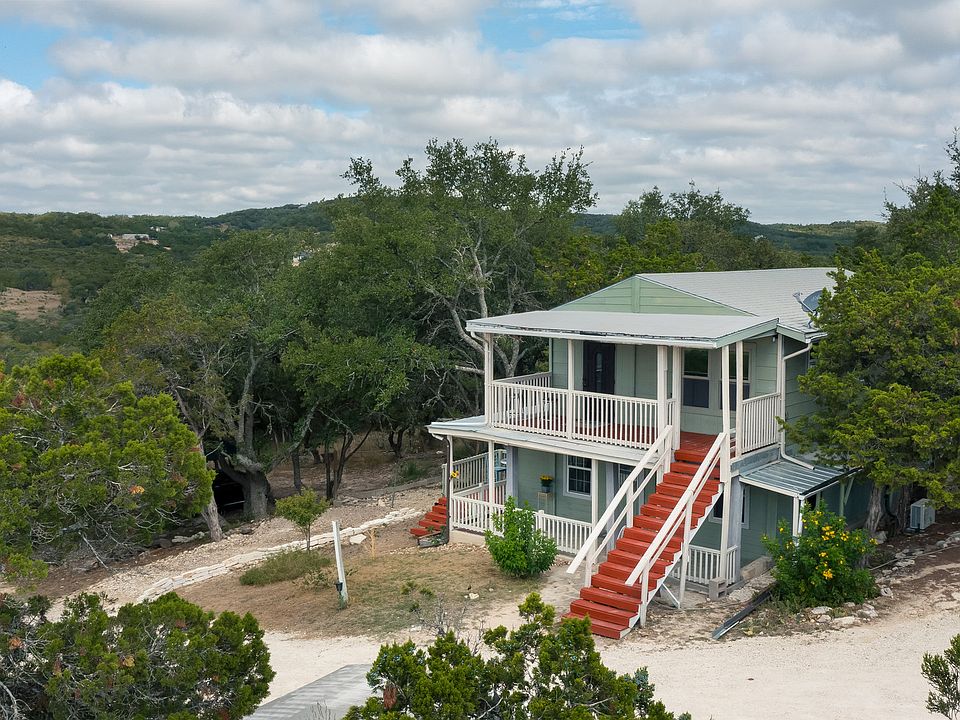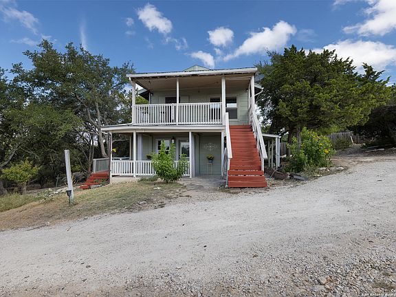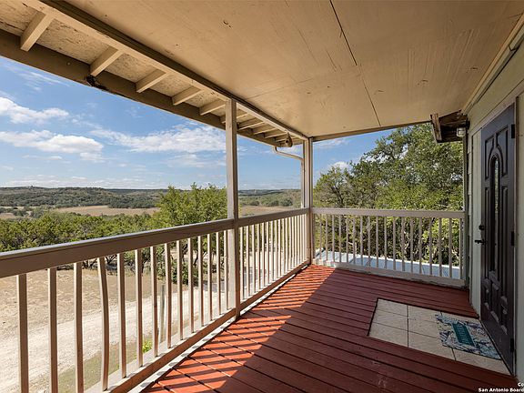 Rare opportunity to own your own country get away with 2 private acres and a view home nestled on a hill in the beautiful SKYVIEW ACRES! Enjoy totally unobstructed views with a lovely breeze from your patio and balcony. This home has a main house on the first floor with 3 bedrooms and 1 full bath. Upstairs enjoy your separate living quarters with an additional 2 bedrooms plus Office/Den and a full kitchen and bath! Main house has open concept kitchen, living and dining. Master suite boasts tall ceilings with all Pine Wood throughout and a walk in closet. Large kitchen with newer stainless fridge and stove/oven in main house. Two full acres with a working well and septic. Horses allowed. The most beautiful views and hill country living that Boerne has to offer! Highly desired area!