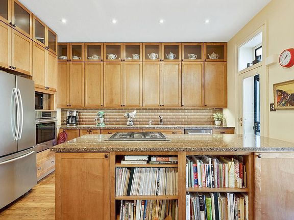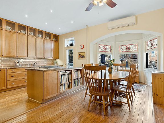 Beautiful and incredibly located, 113 Windsor Place is a 2-story sandstone townhouse with an English basement, deck and garden. Built circa 1903 this legal 2-unit home, currently configured as a single family, was impeccably renovated for modern comfort and tastes. Your perfect Park Slope living experience begins with a prime location, moments from Prospect Park and many local conveniences. The generously-sized home blends modern upgrades including split-system air conditioning with elegant period charm and beautiful high-end finishes, creating a warm, gracious ambience. Up the front stoop and through a welcoming red door are a vestibule and entry hall leading into a wonderful parlor. This ideal backdrop for entertaining is brightened by southern light from triple windows and extends into an expansive open-concept living room. Beyond sits a large open dining area for enjoying meals and a light-filled gourmet kitchen for the cook. Gut renovated in 2016, the stunning chef's quarters feature lovely stained-glass panels above sunny bay windows, abundant custom wood cabinetry rising to the ceiling, sleek quartz countertops, a center island with range and storage, a second oven, French door refrigerator and massive pullout pantries. Take your coffee out to the deck that overlooks and steps down to the private patio surrounded by landscaped plantings, great for outdoor gatherings. The main level also presents a full bathroom, ample closets and a Miele washer-dryer. On the second floor, 3 inviting bedrooms include the spacious and sunny primary bedroom with 3 sizable closets. An adjoining office accessed from both the primary bedroom and the hallway is ideal for working remotely. Plus there's a huge walk-in closet with a skylight and 2 entrances, a full bathroom, and 2 generous rear bedrooms. The windowed basement extends the living space with a recreation room, guest room, excellent storage, and a third full bath. Venture out to Prospect Park, moments away, for sports, strolling, bicycling, green space, picnicking, and the dog beach; or to the fabulous offerings along Prospect Park West and 7th Avenue including Fonda, Union Market, Winner and Casa Azul. The F and G subways are right around the corner and the Y at the Park Slope Armory is a short distance away.