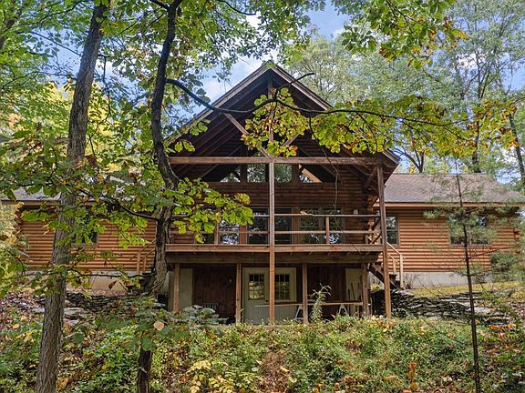 Peaceful Nature Lovers Paradise.Forest bathe in the comfort of your own home!Extremely private and hidden from the road on 7 acres, this custom-built log home is perfect for nature lovers, fishing enthusiasts and sportsmen.Featuring open concept main floor living, this home is artfully designed with vaulted ceilings, exposed beams, and utilizes traditional log home wood craftsmanship.Experience the warmth of an open concept immediately upon entry into the cabin-like main area, which includes a large kitchen with dining area that flows to the living room and shares a double-sided stone hearth. Kitchen includes the dining area and features an island with seating and plenty of cabinets. Easy access to the outside through French doors that connect the kitchen to a screened porch. The living room connects to a covered deck directly off the back with views of the creek.Nestled in the private, mature woods, each room has vistas that look out to the surrounding nature and trees. Down the back hill is direct access to the Roeliff Jansen Kill.The primary bedroom and connected en suite bathroom feature a vaulted ceiling, walk-in closet and a shower and jetted tub. Down a hall on the other side of the main living space are two additional bedrooms and a full bathroom, completing the living area.The large, unfinished walk-out basement has potential to be converted into additional living space.A full house generator was installed in 2023.Located close to Germantown, Tivoli and Hudson with easy access to Amtrak.