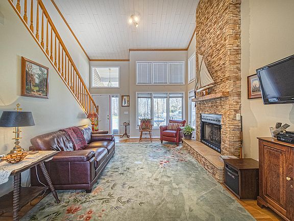 Picture perfect home ready for you to move in on the first day. Each floor has its own bedroom and bath. The master is upstairs with a new master bath with heated floors and walk in shower. With a separate porch for that quiet morning coffee. Entry level bedroom was to be original master so easily convertible. Enjoy the cozy sunroom . If one floor living is desired there is a hook up for a washer and dryer in garage. Kitchen has been completely updated with all appliances less than two years old. Walk out basement has family room with built in TV cabinet and surround sound. Guest bedroom goes to screened porch (Currently used as a boat restoration area) but will be restored. Continuous hot water so you never run out. Ample storage throughout. High speed internet