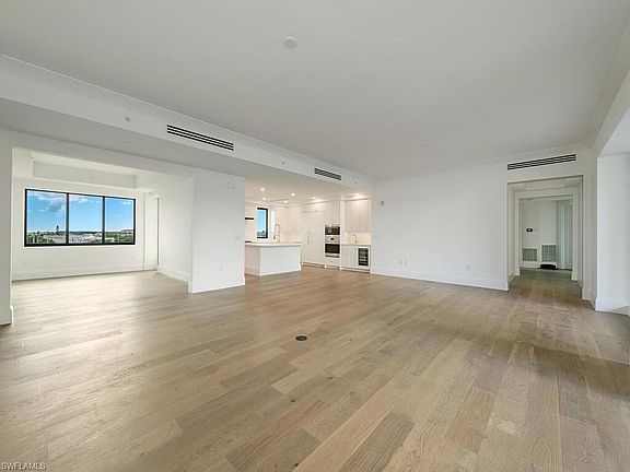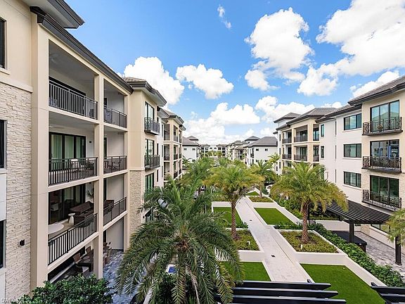 Welcome to Quattro at Naples Square in the Heart of Downtown Naples! Move-In Ready, this new construction luxuriously custom-designed 4th floor Espada floor plan features 3,358 sqft of spacious living with 4 beds+den and 4 (1) baths. The open floor plan boasts 10' ceilings, impact-rated doors and windows, a great room, den, two large balconies overlooking meticulously landscaped grounds, and a stunning gourmet kitchen with top-of-the-line Sub Zero, Wolf, and Miele appliances, beautiful quartz countertops, natural gas, luxury wood flooring, custom cabinetry, and wet bar with under-counter beverage cooler. The residence has 2 secure parking spaces with EV charging capability and one storage space in the building's gated and covered garage. Quattro at Naples Square offers resort-style amenities including a pool, spa, and state-of-the-art fitness center. Entertain your guests in the upscale social room, complete with full kitchen, billiards table and large-screen TV’s. Paradise living within walking distance of famous 5th Avenue, sugary beaches, world-class shopping, and fine dining of Olde Naples.