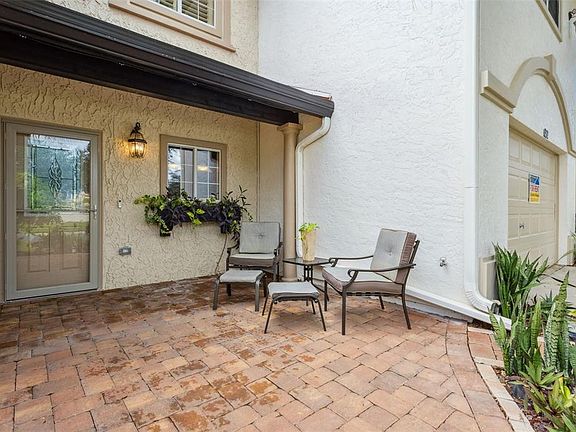 LOCATION LOCATION LOCATION!! NO BOND! WELL-MAINTAINED CONDO STEPS FROM SPANISH SPRINGS TOWN SQUARE AND THE LA HACIENDA RECREATION CENTER! Enjoy the ultimate in low-maintenance living in this beautifully maintained condo located just steps away from Spanish Springs Town Square and minutes from all the shopping and dining The Villages has to offer. The condo association takes care of the lawns and exterior maintenance, allowing you to relax and enjoy your surroundings. As you approach the front door, you're greeted by a charming pavered front patio, perfect for sipping your morning coffee or relaxing outdoors. Inside, the spacious kitchen features granite countertops, stainless steel appliances, and plenty of cabinet space. The primary bedroom suite, conveniently located on the first floor, easily accommodates a king-sized bed and a full furniture set. The primary bath offers a dual vanity and a large walk-in shower for added comfort and style. A half bathroom on the main level adds convenience for guests. Upstairs, you'll find a spacious guest bedroom, a full guest bath, and a versatile loft area ideal for a home office, entertainment room, or hobby space. The private back patio provides a second outdoor living area surrounded by a full privacy wall, perfect for a spa, grill area, or fire pit setup. New Roof 2025/ Exterior Paint 2025
