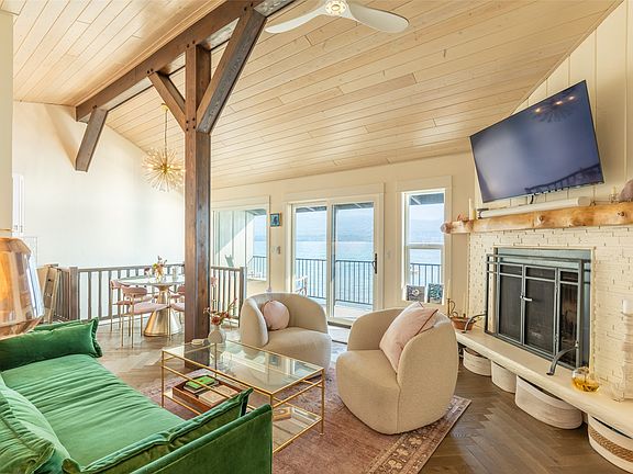 Stay and play, then fly away with this rare opportunity on Whitefish Lake. This comfortable two bedroom, two bathroom waterfront condo offers 1,344 square feet of comfort with postcard worthy views, a private boat dock, and boat slip. Perfect as a second home or vacation retreat, it offers a true Montana lifestyle with four season enjoyment. Summer days are spent on the lake or exploring nearby golf, City Beach, and downtown Whitefish, while winter invites cozy evenings by the fireplace after skiing at Whitefish Mountain Resort. Glacier National Park is just a short drive away for endless adventures. Included with the sale is a Kalispell Car Condo at Glacier International Airport, making travel seamless for those who return to their happy place in Whitefish. Waterfront properties like this on Whitefish Lake are seldom available. Seller is a licensed agent in the State of CA.