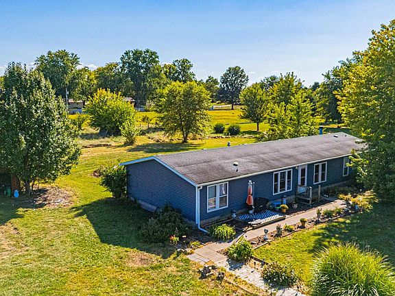Situated on 5.00 acres complete with various ornamental grasses, ample flowering bushes, and abundant daylilies in rural Cantrall, you will find this sprawling 4-bedroom, 2 full bath 76X28 Four Seasons double wide manufactured home! The sprawling recently freshened up interior boasts a bright and airy front facing living room, formal dining room with ample space for a large table and chairs, equipped kitchen complete with an overhead skylight, center island, breakfast bar, and a newly installed refrigerator (2025), spacious rear mudroom/laundry area, fantastic family room with two overhead skylights, great floor space, and a center woodburning fireplace complete with adjacent built-ins, and four spacious bedrooms. The primary suite measures 14X13 and is situated on one side of the home -- while the other three are located on the opposite side of the home with an updated full hall adjacent bath complete with an overhead skylight. Primary suite boasts a 5X7 walk-in closet in addition to a private full adjacent bath with an overhead skylight (bath has been mostly gutted -- existing supplies/materials to remain). Two of the other three bedrooms have adjacent walk-in closets. Property also features various vinyl replacement windows, updated furnace and central air conditioning unit, newer flooring and fresh paint throughout, older rear storage shed, and all appliances to remain upon settlement including washer and dryer. City water/private septic system on premises. Take a look!