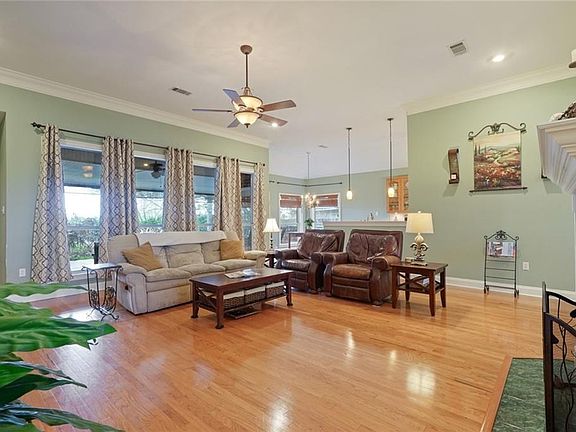 Beautiful waterfront home in desirable Clipper Estates. Enjoy spectacular water views & majestic sunset views from the open concept living spaces. Chef's kitchen w/breakfast area features gas Viking range, hands-free faucet, granite counters, under cabinet lighting. Spacious outdoor patio is perfect for entertaining. Large covered boathouse/dock provides great space for relaxing, dining, fishing, boating; complete w/lift to keep your boat protected & clean. Come see what it's like to live life on the water!