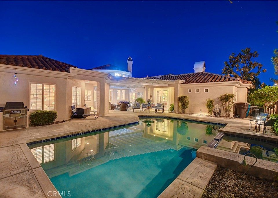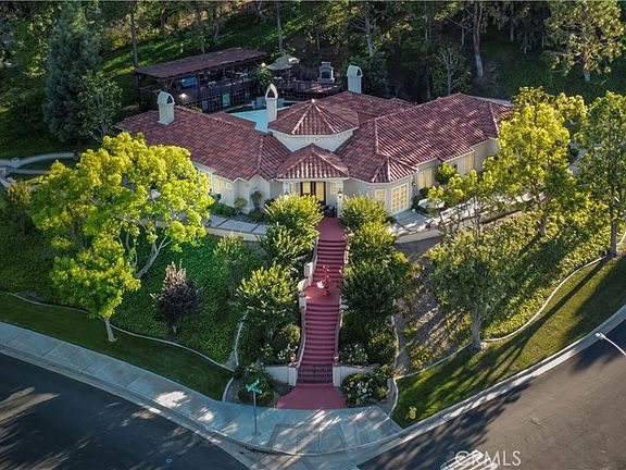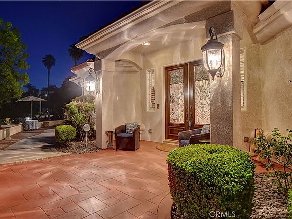 Welcome to this stunning custom-built home, a true 1996 build gem nestled on a . 84 acre corner lot with 4 bedrooms and 4 bathrooms and 3100 square feet of living space. As you enter the home through the stained glass double doors you will be captivated by the high ceilings and a rotunda living room that exudes elegance with natural sunlight through the french doors and a cozy fireplace with tile mantle creating a warm and inviting feeling with classic chandeliers with ceiling medallions. The gourmet kitchen has granite countertops, an ample number of cabinets providing lots of storage & island with a secondary sink. Kitchen opens up to the dining nook area as well as the family room with back door entrance from outside that opens into a hallway featuring a full bathroom. The family room has a fireplace, 2 large windows and French doors granting access to the backyard. The two personal studies are perfect for the avid reader or professional, featuring custom built-in library with shelves, desks, and storage areas. Built-in window settees in two bedrooms provide a cozy reading nook with scenic views. The connected bathroom features dual sinks, ample storage space, walk-in shower and soaking tub. The spacious master suite fireplace serves as the focal point through the bedroom wall into the bathroom creating a unique and captivating architectural feature, while the French doors grant a beautiful view of the pool and backyard. Master bath has a walk in shower, separate jetted soaking tub with two picture windows, dual vanity sink with plenty of counter space and storage. Enjoy the outdoors in complete privacy with nature's bounty on your nearly one acre of property, relax on the beautiful wrap around deck as you breathe in the air from your own mini pine tree forest, and revel in the sights and sounds of nature. The Aluma Wood patio cover in the outside pool area and the recently refinished spa and pool create a perfect space for relaxation and entertainment. As twilight descends, the patio's moon, stars, and night lights paint a picturesque backdrop for unforgettable evenings. This extraordinary home offers every luxury you desire. Located in a cul-de-sac, this residence provides a peaceful retreat while still being close to all the amenities Riverside has to offer. Don't miss this rare opportunity to own a timeless masterpiece with a harmonious blend of elegance and nature's allure while still being near shopping, dining, entertainment and freeways.