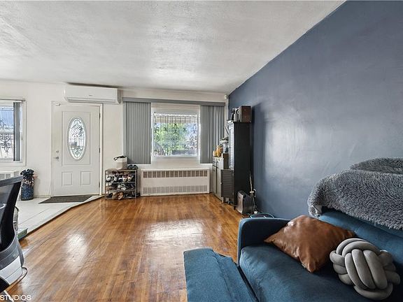 This two-family house with upgrades such as a mini split system for heating and cooling in the upstairs unit, nest thermostat, new floors and windows in the first-floor unit, and a new roof done in 2019. The top floor features two spacious bedrooms with its own front terrace, as well as direct access to the backyard. The first-floor unit is a spacious one-bedroom apartment with an eat in kitchen, living room and Queens sized bedroom with access to the backyard. There is also access to the garage which is currently closed off and used as a storage/workspace. The front driveway fits 1-2 cars. Note that there is not a basement in this home.