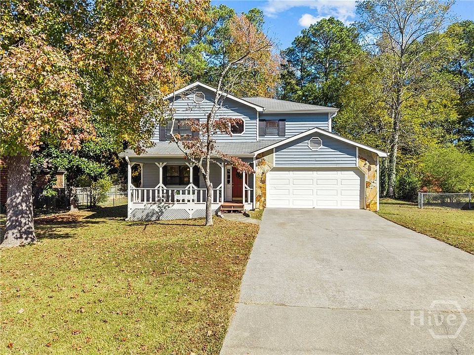 Stone fireplaceSpacious backyardCovered front porchDining roomWalk-in pantryTwo walk-in closetsBack patio