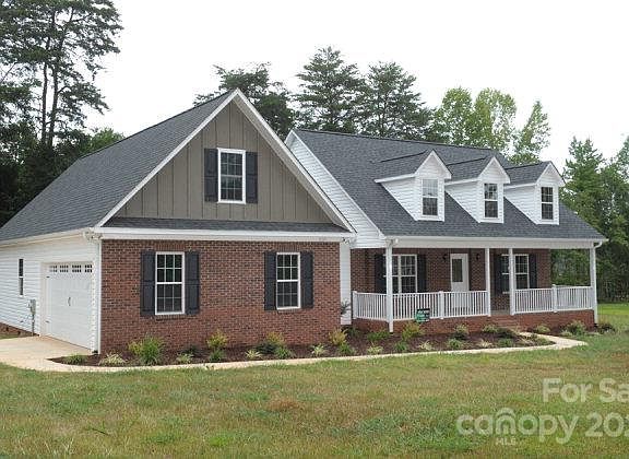 New country home has three bedrooms, two baths. Front porch, gables and dormers provide special charm. Central great room with a cathedral ceiling, fireplace, natural light. Columns divide great room from kitchen and breakfast.