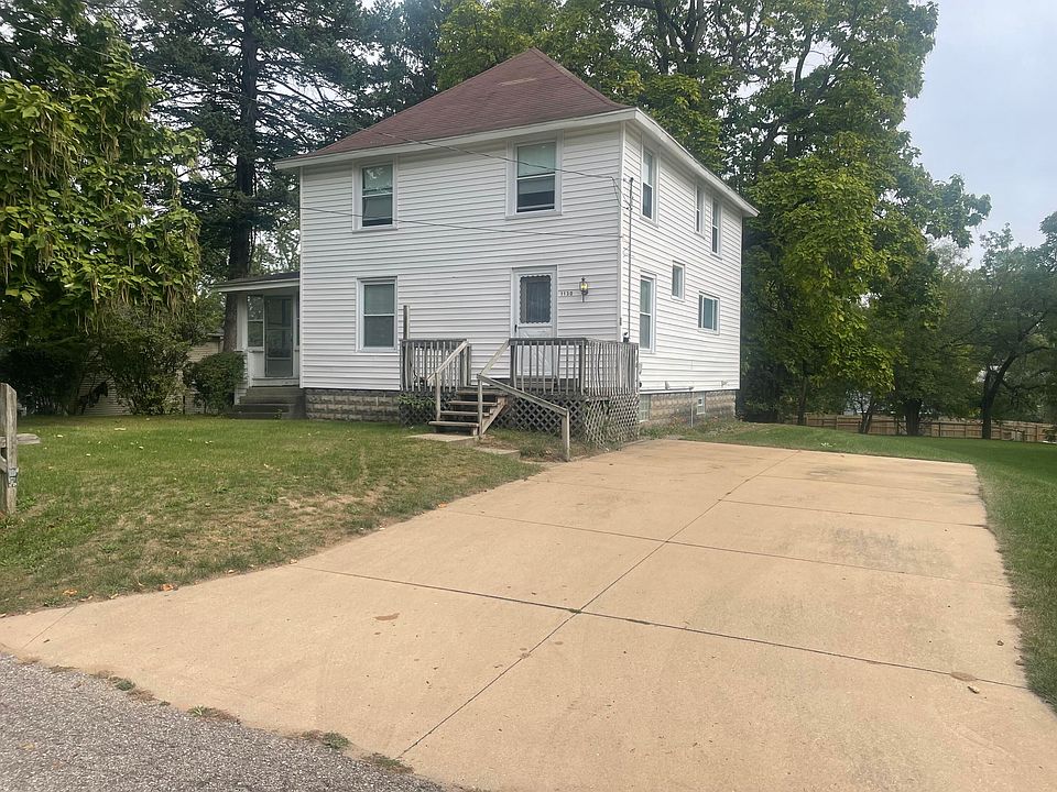 This home was built in 1925 How many stories could it tell. 4 bedroom 1.5 Baths full Basement with glass block windows. Large almost an half acre Lot. large shed and room for a large Garage. Seller would like to sell as is. Fireplace could be a gas fireplace or chimney liner for wood burner.Interior Pics will be added soon