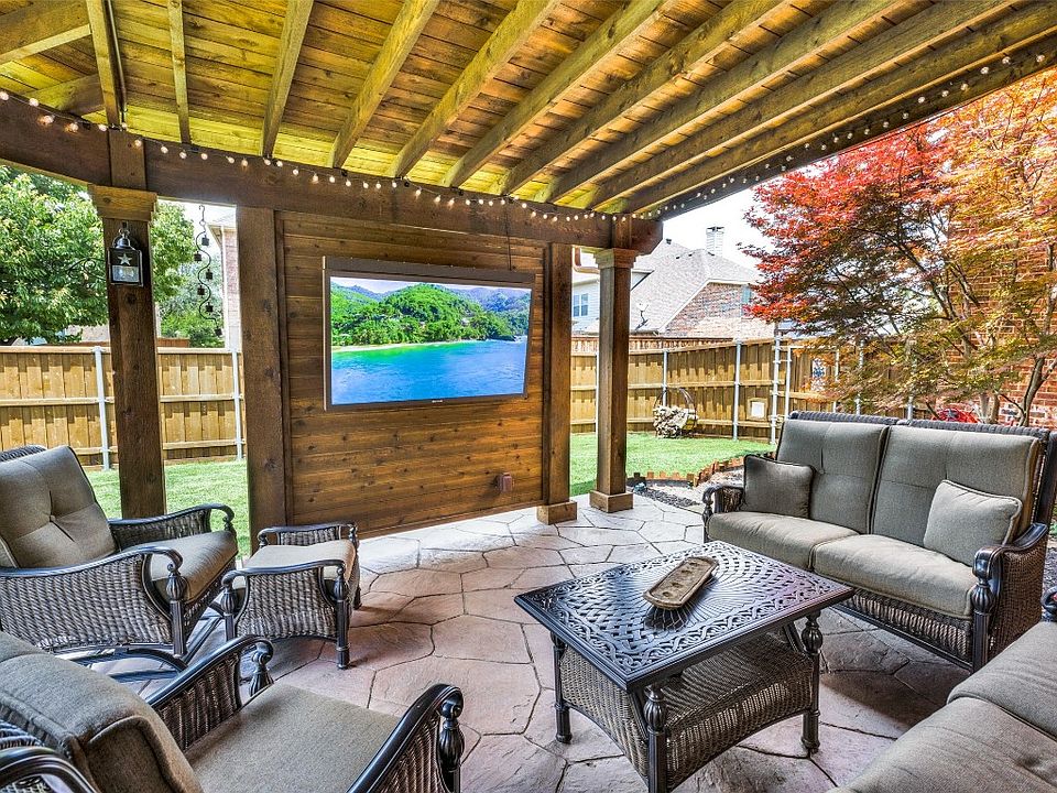 Impeccably maintained 5BR,4BA with fantastic floor plan on a culdesac in West Allen. Enjoy the large south facing front porch (30X8) or the wonderful covered outdoor living space (20X21) with weatherproof TV, Big Green Egg platform, bar seating and space for outdoor fridge. Study with french doors and 5th bed w full bath down. Kitchen has double ovens, gas cook top, walk in pantry, bar seating and is open to spacious family room. Large master up with balcony (10X9), bath with dual vanities, separate shower, walk in closet with custom closet system. Homework or craft niche w storage. 2 large bedrooms in children's wing w large game room, bath. 4th bedroom up w en suite bath. Updates: New Roof is scheduled, DW '22, Carpet '21, Windows & most exterior doors '17, insulated garage door, radiant barrier, tankless water heater, Ecobee prog thermostat. 'A' rated Kerr Elem School. Close to Hwy 75 & Sam Rayburn Tollway, shopping, dining, entertainment.