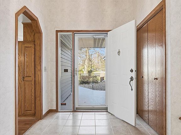 Enjoy one level living in this sought after community! Well-maintained townhome with loads of natural light, located right next to the walking trail. The kitchen is spacious with ample cabinetry and big sunny windows. The large living room features a cozy gas fireplace, perfect for relaxing or entertaining. A beautiful sunroom overlooks a peaceful creek and opens to a private patio through French doors. The main floor master suite boasts French doors, a large walk-in closet, and a spacious bathroom with a roll-in shower, perfect for wheelchair accessibility. Second bedroom is generously sized and conveniently located across from a full bath. Additional highlights include a heated garage with epoxy flooring and a self-managed, well-maintained community. This home offers comfort, style, and accessibility all in one package!