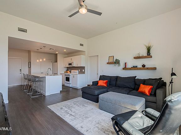 This modern condo offers the perfect combination of comfort and convenience in the heart of downtown. With its prime location across from the highly sought-after Margaret T. Hance Park, this unit presents an incredible opportunity for urban living at its finest. The unit is in the building's preferred setting, just a couple doors from the main staircase and elevator. Upon entering, you will be greeted by an inviting and open floor plan that seamlessly integrates the living, dining, and kitchen areas. With ample natural light streaming through nice, large windows, it creates a warm and inviting ambiance. It's the perfect space for relaxation or entertaining guests. The kitchen is a chef's dream, featuring matching cool, retro-feel appliances, sleek quartz countertops, and abundant storage in beautifully enameled cabinets and pantry. Whether you're hosting a dinner party or preparing a quick meal, this kitchen is sure to please the pickiest buyer! The bedrooms offer comfortable living space and plenty of room for personalization. The bathrooms are elegantly designed with contemporary fixtures and finishes, providing a spa-like experience. Residents will also have access to a range of desirable amenities. These include a generous sparkling pool heated in winter months, communal gathering spaces with BBQ grill, a welcoming open lobby with zen fountain atmosphere, and a gated/covered parking area, ensuring that every aspect of your lifestyle is catered to. Situated in the heart of the vibrant art and culture of Roosevelt Row & Arts District, this condo offers walking-distance access to a myriad of dining, shopping, and entertainment options. From trendy restaurants and cozy cafés to art galleries and boutiques, you'll find everything you need just steps away from your front door. The unit's location also allows for convenient closeness to Arizona State University's Downtown Campus, Convention Center and professional sports arenas. Don't miss the opportunity to own this remarkable unit in a prime location. Come experience the epitome of modern urban living!