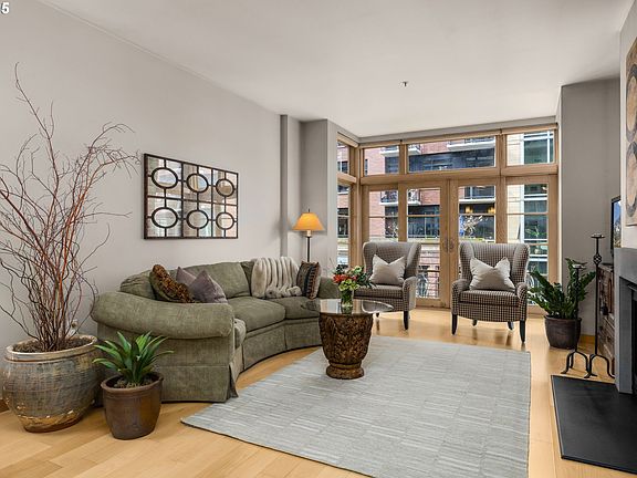 Incredible opportunity to live in the sought-after north Pearl District with its balance of residential comfort and urban convenience. This versatile Bridgeport condominium is the perfect combination of open-concept design and privacy. Bathed in natural light, the expansive open-concept main living area showcases high ceilings, light hardwood floors, and a cozy fireplace with modern surround. Perched out over the neighborhood, the Juliet balcony offers lovely city views through the wall of windows and features sliders inviting the gentle breeze of Portland’s spring and summer seasons. Perfect for hosting, the space effortlessly accommodates both formal dining and casual entertaining with a stylish eating bar for guests. The generously sized bedroom offers a quiet retreat, complete with a large walk-in closet and convenient access to the spacious full bath, designed with ample cabinets for storage and a modern vibe. The property includes a deeded parking space and storage unit. Just blocks from The Fields Park and adjacent to Tanner Springs Park, residents enjoy retail shopping, grocery, live music and theater and restaurants are in blocks. Portland Streetcar runs adjacent. The association's rental capacity has available spaces.