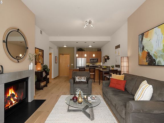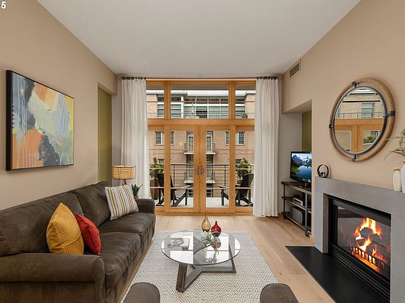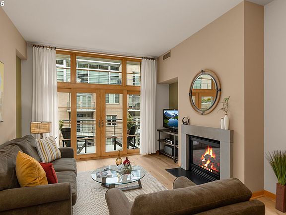 Stunning one-Bedroom in Bridgeport Condominiums with luxury finishes and thoughtful upgrades. Perched just below the penthouse, this 6th-floor coveted one bedroom shines with soaring ceilings and a smart, spacious floor plan. The recently renovated kitchen features sleek quartz countertops, an extended counter top with built-ins, and upgraded new stainless appliances—perfect for modern living. New oak hardwood flooring extends through the main living area and hallway, while the bedroom is fitted with plush, upgraded luxury carpet for added comfort. Enjoy the cozy gas fireplace with its contemporary surround and take in fresh air on the generous private deck, accessed through elegant custom wood French doors. Additional highlights include charming wood windows, a walk-in closet with closet organizer and a full-size upgraded washer and dryer for added convenience. A deeded, secured parking space and storage unit are included in the sale. Just blocks from The Fields Park and adjacent to Tanner Springs Park, residents enjoy retail shopping, grocery, live music and theater and restaurants are within blocks. Portland Streetcar runs adjacent. The association's rental capacity has available spaces.