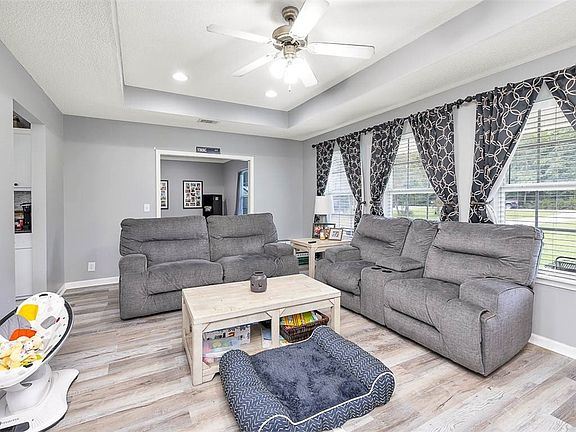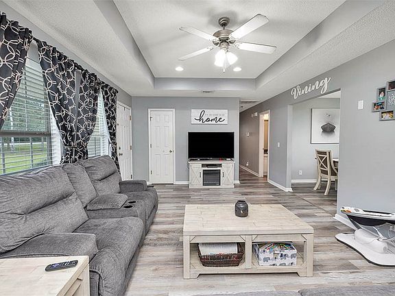 Located on a beautiful .81acre property, this three-bedroom, two-bath home features an open style living, dining, kitchen area with views to a very expansive backyard. Trayed ceilings in the Primary Bedroom and Den. 18 feet x 26 feet detached garage with 10-foot door is perfect for one car plus hobbies and toys. Lot opens up at the rear with views of large pond. This well-designed home with .81 acres is conveniently close to local shopping and restaurants.