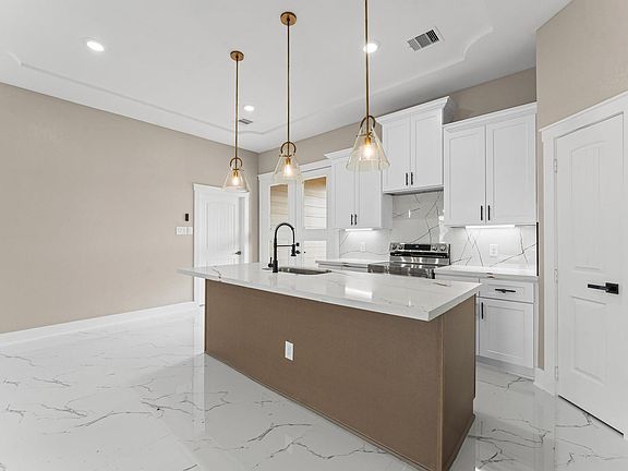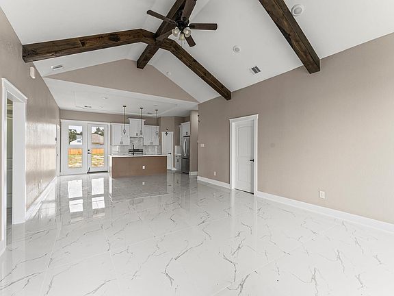 Welcome to this charming single-story home offering 4 bedrooms and 2 baths, designed for comfort and style. Step inside to discover high cathedral ceilings that create a bright, open feel, along with beautiful wood accents that add warmth throughout. The spacious kitchen is equipped with abundant cabinetry, a center island, and plenty of counter space. Enjoy laminate and tile flooring in every room—no carpet to worry about. The large primary suite features soaring ceilings, a luxurious bath with a walk-in shower, soaking tub, and a double-sink vanity. Situated on a generous lot, the property boasts a covered patio with wood-accented ceilings, plus a long driveway for ample parking. This home is not in a flood zone, offers a low tax rate, and comes with no HOA restrictions.