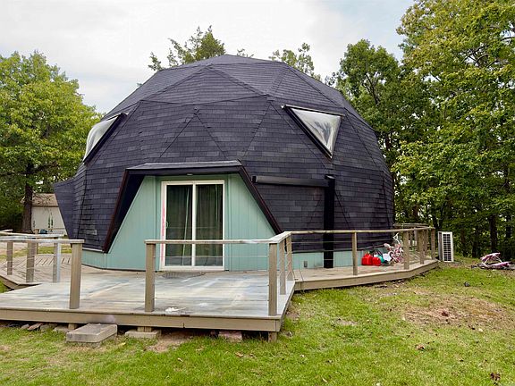 Beautifully remodeled in 2022/2023 1 bedroom 1 bath with loft Geodesic (Dome) style home on 28.59 wooded acres m/l. The home features quartz countertops, new sheetrock, new wiring, new LVP flooring, custom spiral staircase, new roof, (all in 2022/2023) and a 14x25 ft garage. Unique home could serve multiple uses such as a permanent home, vacation rental or hunting cabin. Plenty of other building spots to develop.