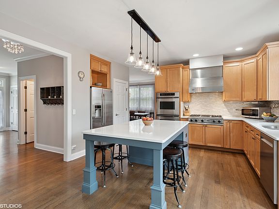 Welcome home to this light filled, absolutely beautiful home on a quiet street nestled between Obrien and McCullom parks. Tons of recent updates make this home move in ready! Bright and spacious 1st floor offers 9 ft. ceilings, White Oak Hardwood floors, crown molding, private office with french doors, entertainment sized dining room with wainscotting, and a stunning 2 story family room that opens to the gorgeous kitchen! Chefs dream Kitchen offers a custom island with seating for 5, Viking cooktop and hood, Thermador double oven, Quartz countertops and beautiful backsplash. 4 bedrooms (3 with walk-in closets) plus a bonus room as well as laundry on the 2nd floor. Full finished basement with updated bath includes a steam shower, newer flooring, large Rec Room and 5th bedroom. 3 car garage, fully fenced backyard, professionally landscaped, brick paver patio & newer shed. Roof & skylight (2022),HVAC (w/wifi)2022, most rooms freshly painted, bedroom carpet (2023), Hard wired Ring doorbell, Newer wifi controlled garage door opener, walking path to grade school...this home has it all! Sellers need an end of July close.