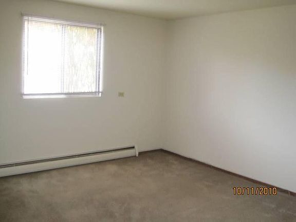 Elgin 1130 Royal Boulevard Two Bedroom 2nd Floor Apartment = includes gas stove, frost free refrigerator, pantry, newer wood like flooring in living room, hall and each of the bedrooms, newer bathroom tile floor, blinds on all windows, wall unit A/C, balcony (per Elgin fire department grill is NOT allowed on balcony. A grill may be kept on ground level. When in use grill needs to be 15' from the building. Cooled grill HAS to be stored next to building on ground level.), laundry on site, assigned storage closet in laundry room, a keyed mailbox, free heat, free water, free garbage, free sewer, and one unassigned off-street parking space. Additional on street parking is available read signs for restrictions. Common areas are cleaned every other week. Maintenance is on staff. Close to shopping, restaurants, parks, golf course, public swimming pool, bus stop. Discounted rent of $1,300.00; due no later than 11:59pm on the 1st day of the month. If rent is paid between 12:00am (midnight) on the 2nd day of the month and 11:59pm on the 5th day of the month rent is no longer discounted; making the rent amount $1,325.00. As long as credit is good the Security Deposit is $1,325.00. Required gross income and this may be combined gross income is $910.00 per week or $1,820.00 bi-weekly or $3,900.00 monthly or $46,800.00. Resident is responsible for electric (lights, A/C and anything plugged in). Renter's insurance policy is required. No animals / no pets allowed. No marijuana smoking allowed. It is aproximetly 40 sq. Will be avaliable approximately the middle of July. 1 year lease with the option to renew
