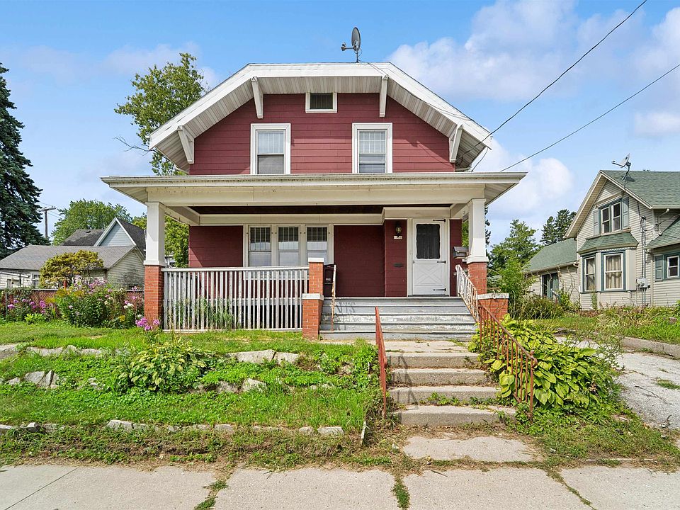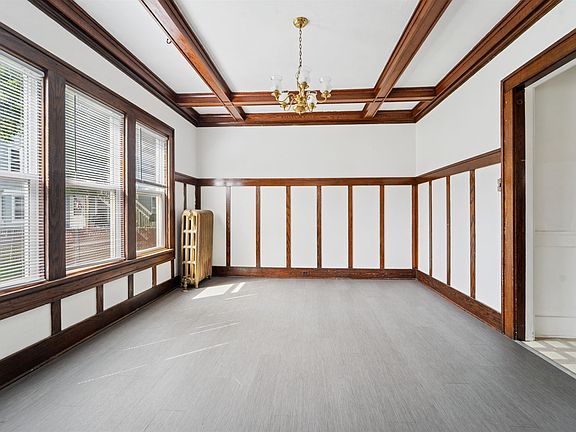 Spacious 2 story bungalow perfect for your first home! This home offers loads of charming character including walnut hardwood flooring, stately crown molding, glass door knobs, and glass French doors. Main level offers 9’ ceilings, oversized living room, kitchen with tall cabinetry, formal dining room, and half bath. 4 bedrooms and full bath on upper level. Attached garage and nearly 2,000 sq ft of living space! First time home Buyers this is for you! Being sold AS IS.