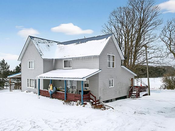 Take a look at this wonderful West Branch property, ready for you to call home. Set on 12.17 beautiful acres, this property offers breathtaking views in every direction. Step inside to a spacious kitchen featuring wood cabinetry, a large island with plenty of storage, and an adjacent dining area, perfect for entertaining friends and family. Notable features include two large covered porch areas, ideal for relaxing and taking in the peaceful surroundings, along with a large pole barn with four horse stalls and a fenced area that allows horses to roam comfortably. You’ll also enjoy a charming mini orchard with apple, cherry, and pear trees, creating a peaceful setting to enjoy year-round, along with a chicken coop for those looking to embrace country living. A scenic pond adds to the charm and is frequently visited by local wildlife. Recent updates include an artesian well, new metal roof, siding, and windows, all completed in 2020. The home also offers peace of mind with a newer forced-air furnace, all new appliances, and updated electrical and plumbing, providing added convenience and flexibility for everyday living or entertaining.