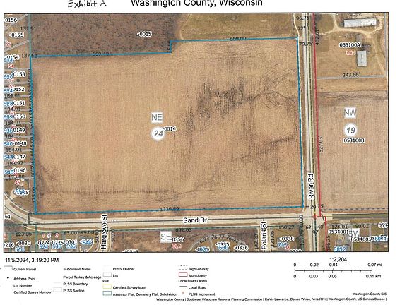 22.8 Acres Prime farmland in city of West Bend located south of the West Bend High School. Great Development or Investment opportunity. Property is currently under AG use with low taxes. Buyer will have to negotiate with the city the cost to connect onto the sanitary. The sanitary serving this parcel would be the West Bend Interceptor about 2200 feet from the property along Sand Dr. & River Rd. Great Buy and hold opportunity. Call today!