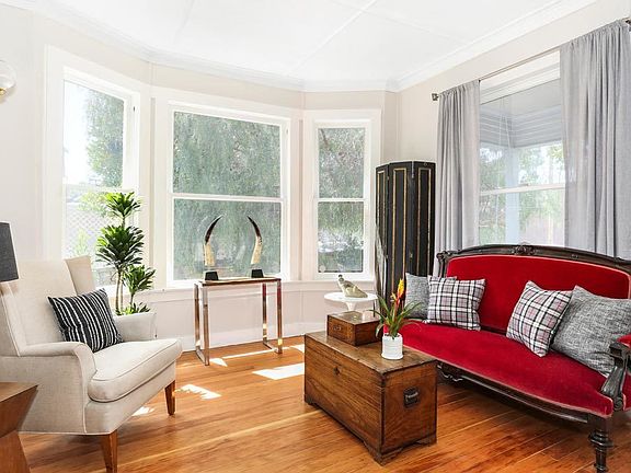 A rare find in prime Silver Lake, this refurbished Victorian circa 1910 is an exquisite remnant of LA's historic past. Over the course of a decade the home has been meticulously restored, including system improvements and stylish modern updates that mesh seamlessly with original heritage elements. On the front veranda a porch swing beckons, the perfect spot for morning coffee amidst lavender and wisteria with views of the Hollywood Sign. High ceilings and large windows fill the home with light, illuminating an extensive array of custom craftwork including crown moulding and gorgeous flooring made of Douglas Fir. The rear yard is a magical setting with pathways through apple trees, Persian limes, pink rosemary and more. Dine under the pergola and enjoy a peaceful sense of privacy, remarkable given the lively scene of Sunset Junction just half a block away. Nearby favorites include Intelligentsia, Pine & Crane, The Black Cat and Silver Lake's legendary twice-weekly farmer's market.