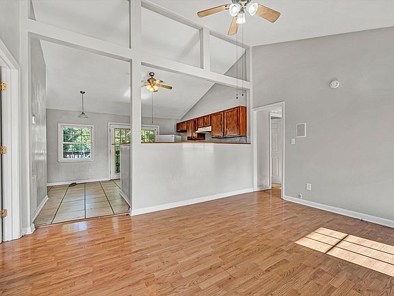 First floor laundry roomVinyl exteriorCovered porchCathedral ceilingsLaminate flooringEat in kitchen