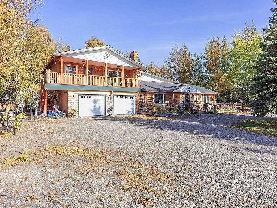 Potential abounds with this spacious, multi-use home. Previously the residence was an extended stay while the current owner ran a daycare. Just shy of Fort Wainwright's back gate and a short drive to either Fairbanks or Eielson AFB, the location is ideal. The home features 2 separate living possibilities along with a flex space in between. The main part of the home consists of 5 bedrooms, 2.5 bathrooms. The master bedroom with ensuite also boasts a closet that once was its own bedroom. The kitchen and large dining area are open as you first walk into the home from either the main entry or the garage off the hallway. The living room has cathedral ceilings, a wet bar, and a woodstove. There is also a dedicated laundry room as well as large storage room. The mother-in-law includes a bedroom, bathroom, full kitchen, living room, and sizable entry/ mud room. There are 2 interior staircases; one made from willow and located in the living room with the other being a steel spiral staircase from the MIL to the hallway where the garage, laundry, and storage room can be accessed. The MIL can also be accessed from the exterior stairs for a private entry. In between these two spaces is a flex area with an additional bedroom (for a total of 7), a common area that is open to a loft area that currently serves as an office. There are 4 decks, 2 rear and 2 front, can be accessed from 5 locations within the home. The backyard has been certified by the National Wildlife Foundation. Enjoy this space with both the hot tub and gazebo that conveys. Previous MLS detail stated that the original home was built in 1978 with additions in 1981, 1985, 1999, 2001, and 2002.