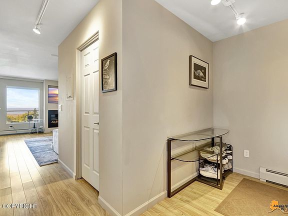 Welcome to this modern condo in the heart of Bootleggers Cove, offering gorgeous views of Cook Inlet & Mt. Susitna! Thoughtfully updated with high-end finishes throughout, this home combines style, comfort & convenience.Enjoy your morning coffee or evening unwind on a private balcony with unmatched vistas. Just steps away from some of Anchorage's best restaurants, boutique shopping, beautifulparks & the Tony Knowles Coastal Trail. Located in a secure, mixed-use building w/residential condos & garages below & commercial units above. Perfect for anyone looking to immerse themselves in vibrant downtown living while enjoying peace, security, and spectacular scenery. Garage is 2 car tandem w/storage area. Dues include interior maintenance which includes common areas & garage heat, electric & property management. 1 cat or 1 dog allowed per unit. No short term rentals.