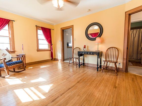 This adorable 1 1/2 story home is what memories are made of! The main floor features a charming living room with original hardwood floors, crown molding and lots of natural lighting, 2 main floor bedrooms, a full bath, galley kitchen plus a delightful eat-in dining area. Head upstairs where you will find a 3rd bedroom with plenty of storage and space for an office or play area for the kids. Other great amenities include a 3 season porch, back patio with privacy fence, one stall garage with lots of green space. Don't miss out on this great offering!