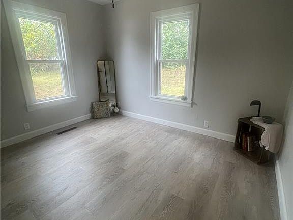 ***Price Adjusted? Here is a beautifully updated 2 br, 1 bath home with full unfinished basement! This stunning property has undergone significant renovations, providing a fresh and modern feel. The back door walks into a room that could be utilized as a home office, converted to a laundry/ mud room, play room, dream pantry, etc. The interior boasts a brand new kitchen, featuring a new overrange microwave and includes an electric range. The bathroom has also been entirely updated. Throughout the home, you'll find new LVP flooring, new light fixtures, and fresh paint, creating a clean and inviting atmosphere. Some new drywall ensures a smooth finish, and new exterior doors enhance both curb appeal and energy efficiency. New and unique vintage style door knobs add a touch of character and charm. Enjoy peace of mind with a new roof installed approximately 2020, all new electric and plumbing completed in 2022, and new windows that brightened the home and added efficiency in December 2023. Stay comfortable year-round with a new natural gas furnace installed in 2023. A new hot water heater is also scheduled for installation soon, further enhancing the property's efficiency and appeal. Outside, enjoy the beautiful back yard with freshly laid sod in much of it and the convenience of an oversized 24x26, 2-car detached garage for added storage, man cave, she shed, work shop, etc. This home is ready for you to move in and enjoy! Agent Owned. Call your favorite realtor today!