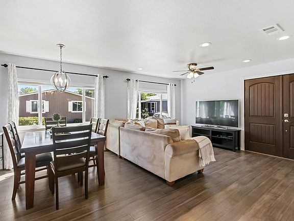 This fabulous mobile home has been fully remodeled within the last 5 years. In addition, it has a newer roof, siding, windows, and heat and air units. The property will not disappoint; it features a spacious living room that is open to the dining and kitchen area. Extensive use of bamboo floors throughout and gorgeous double entry doors. The state-of-the-art kitchen highlights, quartz slab counter, designer tile backsplashes, stainless steel appliances, and white cabinets. Spacious master suite with French doors, a large walk-in closet, and a lavish master bath. There is a centralized hall bath with superb finishes. This special property features a 3-car-carport, a spacious backyard with a covered patio, and a large shed for added storage. A must see!