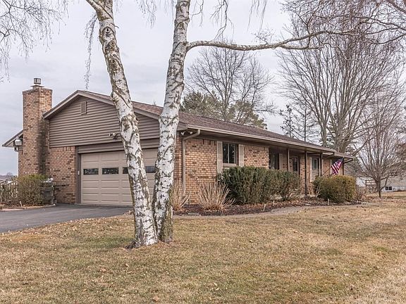 Wonderful brick ranch set on an acre with expansive views of Wing Farm acreage! Former home owners meticulously cared for and maintained this long-time family home. The kitchen features stainless steel appliances, updated Corian® countertops and rich-looking cherry-stained cabinets. Generous family room with fireplace and step-out access to a large deck in the rear. Main floor full and half bath, plus three bedrooms. Nicely finished lower level with wood laminate floor and a newly installed full bath with pretty pedestal sink, tile floors and shower stall. It's plenty large enough to put in another bedroom or keep the open concept layout. Lower level has a door to walk out for easy access to the outdoors. In addition to the spacious two car garage, there is an outbuilding that houses the INCLUDED lawn tractor and snow blower. Outbuilding is a perfect potting shed and has lots of more room for other projects. This home and property are ready to move in and enjoy!