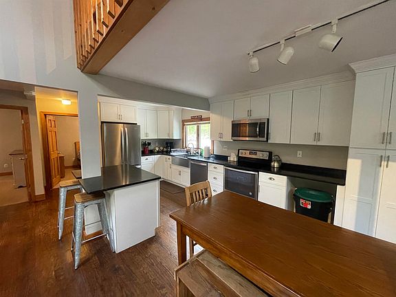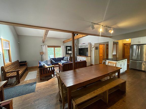 This home has hosted many family gatherings and now awaits your family. This 3+ bedroom, 3 bath home also features an open living area with a well appointed kitchen, open loft, rec room, office, and a bonus room, storage room, spiral staircase and a multilevel deck with built in hot tub, all on 8.5 acres. A spacious centrally located year round home, or a vacation / rental property situated between the lakes and the mountains, and close to the snowmobile trails. Whether you seek serenity or adventure, this home offers the best of both worlds, with its convenient location between the lakes and the mountains. Embrace the opportunity to create cherished memories in this beloved family retreat. Home is being sold furnished.