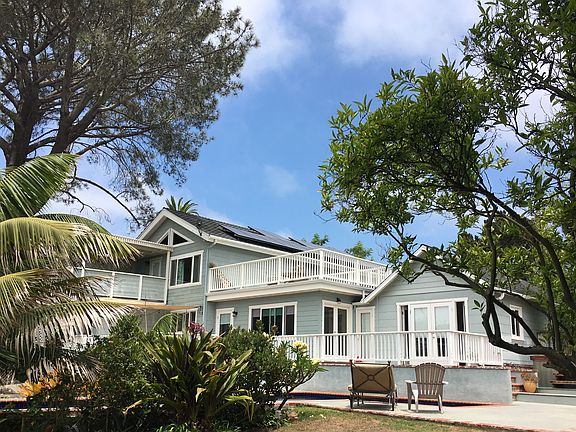 Rare opportunity to buy on one of the most coveted streets in Encinitas. This is a very charming home on almost a half acre of ocean view land in a prime location. Featuring a 75 foot salt water lap pool, 2 ocean view decks, an open floor plan and fully fenced and landscaped grounds, this is the ideal family house in an excellent school district to make your forever home. Enjoy panoramic ocean views over dinner on your rooftop deck, or sunsets from the private en suite master bedroom outdoor deck. On clear days the hilltop location offers exceptional visibility of San Clemente and Catalina Islands, as well as Dana Point, all from the comfort of your rooftop deck. The large lot features fully fenced private front and back yards, surrounded by mature trees, hedges, landscaping, and a variety of fruit trees. Refreshing sea breezes keep the house comfortable throughout the year. The location away from the immediate coastline is also very quiet and tranquil, with minimal noise pollution from the freeway, train, or aircraft. The home features extensive upgrades, including a roof top ocean view deck, new dining room with wet bar, master bedroom en suite ocean view deck, solar, private lofts in the 3 upstairs bedrooms, whole house fan, hot tub, wall air conditioning, whole house water filtration system, organic garden, outdoor shower, dog run, chicken coop, fire pit, tree house, and custom amish built matching playhouse. A perfect entertainer's home as well, with lots of indoor and outdoor space, wet bar and separate wine refrigerator. This well maintained and upgraded property is turn key and ready for you and your family to move in and create lifetime memories. Wotan Drive is a beautiful tree lined street at the top of a hill overlooking the ocean; this ultra low traffic and rustic road is characterized by large lots, mature trees and greenery, and an old California feel, yet you are less than 5 minutes to the beach and downtown Encinitas, with easy freeway access. The street has no streetlights, allowing for incredible nighttime stargazing and frequent wildlife sightings. The summit location 300 feet above sea level and approximately 1.5 miles from the beach is just far enough inland where you avoid most of the coastal fog and can enjoy the sunshine while the immediate coastline is socked in June gloom. Large gently sloping ocean view lot on west side of Wotan Drive: over 17,700 SF (.41 acre). True Chef's kitchen: 6 burner stove, 2 sinks, warming drawer, double oven, separate refrigerated wine cooler, and walk in pantry. Excellent location: minutes to the beach, and walking distance to K12 schools, Community Center, Lake Park, Oak Crest Park, and Sprouts. Award Winning School District: Ocean Knoll Elementary, Oak Crest Middle, and San Dieguito Academy High School are all within walking distance of the home. Separate two car original 1950's garage building: with workbench, storage, and small workout room or additional storage area. Can be converted back to 2 car garage if desired. Parking for 4 cars in driveway. Full house alarm with outdoor and indoor cameras, and security lighting with motion sensors. Willing to pay buyer's agent commission of 2.5%.