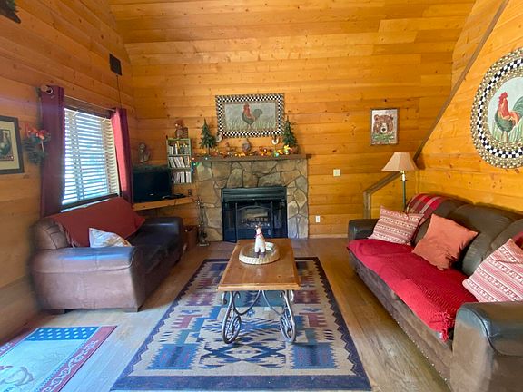 Cute 2 bedroom 3/4 bath cabin with an upstairs loft. Beautiful log siding outside, tongue and groove inside with high ceilings. Spacious living room with a nice stone wood burning fireplace to warm you up in the winter. Dining area right off the kitchen. Kitchen features gas range stove and oven, microwave, dual sink and refrigerator. Master bedroom located on the main floor. Large open room downstairs with a little covered deck. Storage/laundry located downstairs as well. This cabin has year round access close to all the shops and restaurants in Summerhaven. Being sold furnished as is. Don't miss out on this Mountain Gem!