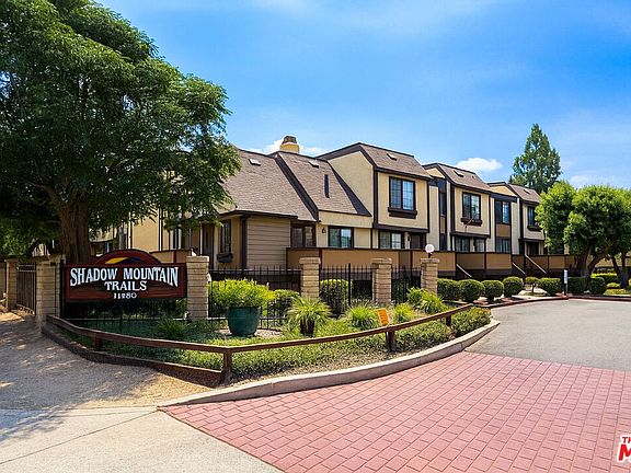 Welcome to this beautiful two-bedroom, two-bathroom end-unit townhouse located in the Shadow Mountain Trails community of Lakeview Terrace. With vaulted ceilings, abundant natural light, and windows on three sides, this home offers a bright and airy atmosphere throughout. Step into the spacious great room featuring a cozy brick fireplace and an open-concept layout that seamlessly connects the living area, dining space, and the bright kitchen. The kitchen has been tastefully updated with white quartz countertops, crisp white cabinetry, and offers a lovely view of the front patio. The main level includes a comfortable bedroom with its own en-suite bathroom. Upstairs, the private primary suite offers peace and quiet, complete with a second en-suite bathroom and generous closet space. Enjoy two outdoor patios, ideal for relaxing or entertaining, along with a convenient attached two-car garage that includes in-unit laundry. With only one shared wall, this home provides privacy and views of trees and greenery from every room. Community amenities include a pool and spa, guest parking, and even stables for horse lovers. You'll love the convenient location near Hansen Dam Recreation Center, the 210 freeway, and nearby hiking and equestrian trails.