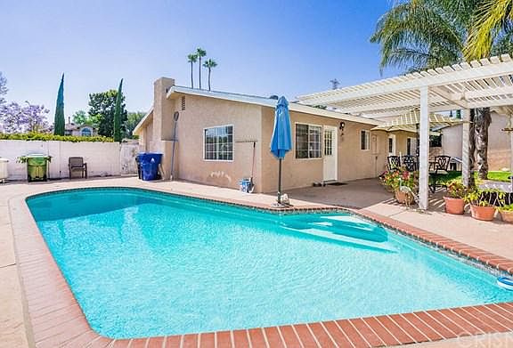 Outstanding Granada Hills pool home perfectly located on a cul-de-sac corner lot. With a nice circular driveway & impressive curb appeal, this single story 3 bedroom displays pride of ownership throughout. Newer wood laminate floors in the living area & tile in the baths. Newer vanities in the baths & fresh paint. Open kitchen with granite counters, stainless appliances & the refrigerator stays. Plenty of room to relax in the spacious living room with fireplace & there is lots of natural light. The yard is private with mature trees, patio cover, built-in BBQ & recently re-plastered pool.