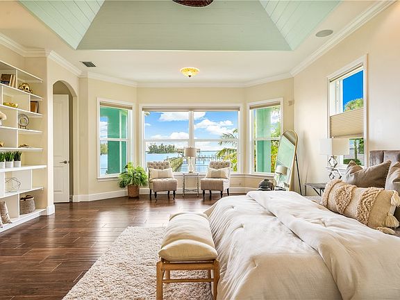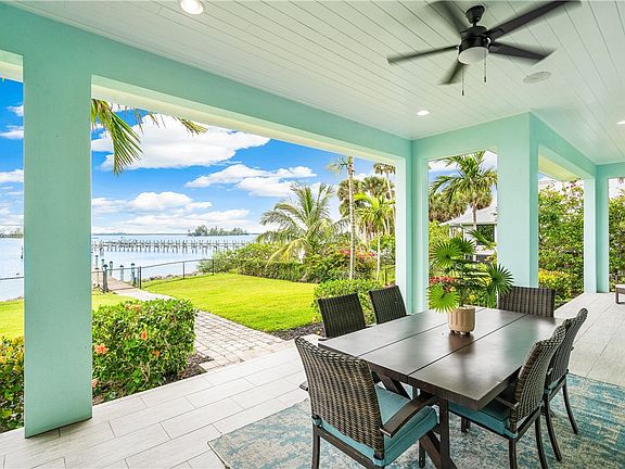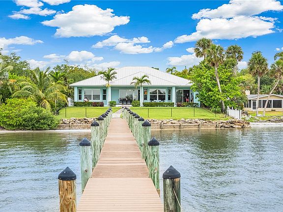 Set on 0.5 acre, flaunting 90 ft of breathtaking riverfront, enhanced by a private dock w/ 10,000 lb. lift, this property is a private oasis. The main house is the perfect blend of charm & luxury, meticulously build by Capp Custom Builders. Featuring panoramic views throughout, the 2,847 sqft open concept home w/ vaulted ceilings & detailed moldings has 3 beds, 2 baths, & a 3 car garage. Covered porches at the front & back provide additional space for relaxation while luscious tropical landscaping enhances the idyllic setting. Completing the estate is a charming 336 sqft guest cottage.