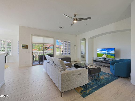FABULOUS VIEWS OUT OF EVERY WINDOW. Property sits atop Queen's Wreath overlooking the mountains, canyons and a glimpse of the city. Each room floods with light and warmth. Gracious 2 Bedroom PLUS DEN, detached home. The HOA maintains all the yards and landscaping. The house is classic contemporary inside with light porcelain plank everywhere except the bedrooms. Privacy is assured on the cul- de- sac street with one neighbor to the right, common area to the left and the canyon behind the property . The huge Great Room opens to the spacious kitchen and dining area. All rooms are spacious with desirable split floorplan for privacy . The subdivision has a pool, spa, gym, barbecue area , trails, tennis courts, pickleball and clubhouse. SEE THE MORE TAB. McDowell Mountain Ranch is close to the 101 freeway for easy access to Sky Harbor Airport. The area has great restaurants including The Vig, Thompson 105 and Sofia's Kitchen and many other eateries and grocery stores and shopping. There is a public golf course and Aquatic Center for recreation and many trails for hiking.