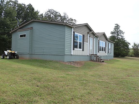 Escape to privacy with this top-of-the-line double-wide home set on 5 beautiful acres in Gans, Oklahoma. Surrounded by mature trees, this property offers a peaceful, tucked-away feel while still being conveniently located.
