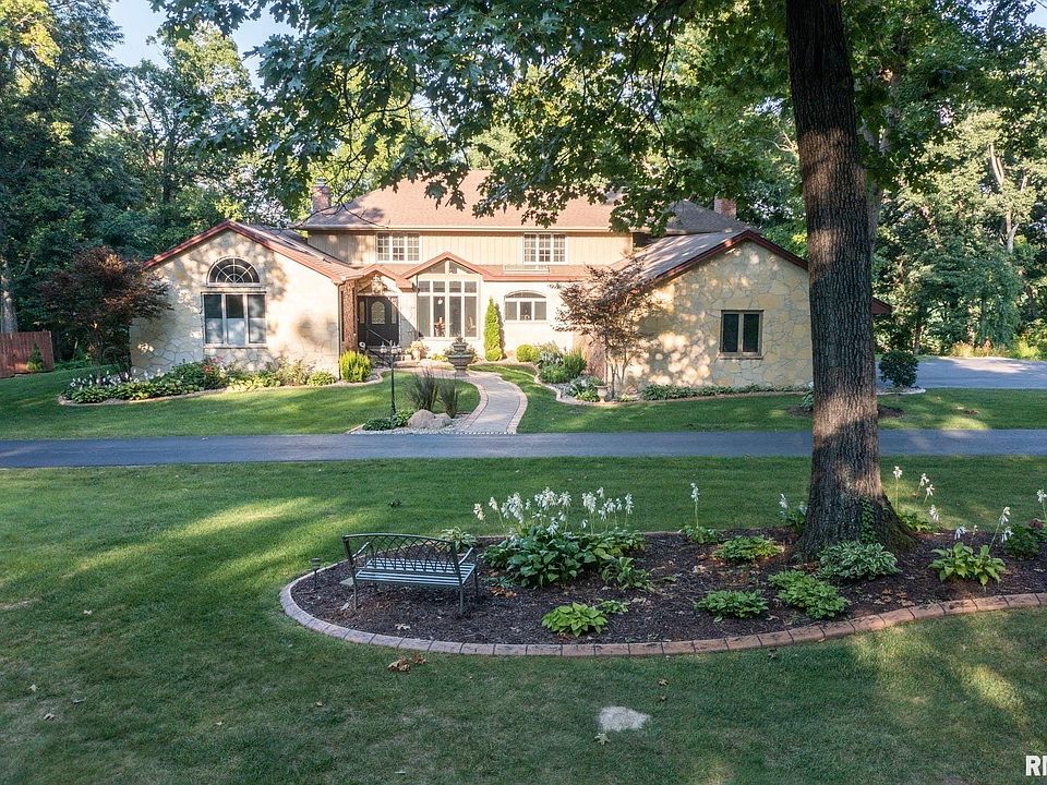 Situated at the top of a secluded hill is this one-of-a-kind executive property in Dunlap school district! This 4-5 bedroom custom-built home sits on 5.26 acres & is a peaceful escape while only being 6 minutes from the Shoppes at Grand Prarie. This home is an entertainer's dream. Outside there is a 48x20 fenced-in pool with two gazebos & a large Morton building. Inside you are greeted to the main level with floor-to-ceiling windows & skylights that provide bright, natural light. The gourmet kitchen includes dual ovens, granite countertops, two pantries, & a breakfast bar that overlooks the front yard. Relax in the large great room, sunken family room, or sunken living room, which all have their own fireplaces & beautiful views of the property. Up the dual staircase, are 2 master suites, both equipped with large full bathrooms & large walk-in closets. Along with that are 2 more large bedrooms & a full bathroom. Downstairs there is also 800 sq ft of finished space for entertaining.