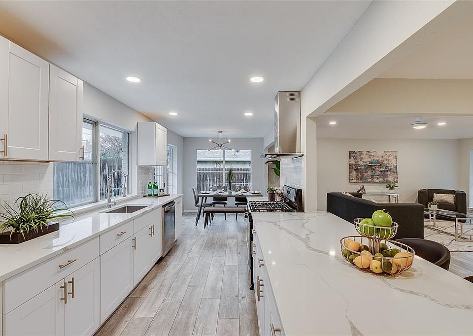 Beautifully remodeled 4BR-2BA-2GA home in Highland Meadows subdivision of Dallas! This home features a new HGTV-style transitional kitchen with white shaker cabinet and Calacatta quartz countertop, complemented by classic white subway backsplash tiles and stainless steel appliances. The master bathroom has marble tiles in the shower along with modern vanity and fixtures. This beautiful home also comes with a new water heater, gray exterior and interior paint, spacious living room, laminate flooring throughout the home. Accessible by I-635 freeway, near restaurants and groceries, 5 mins to Lake Highland, less than 20 mins away from Downtown and Uptown Dallas.
