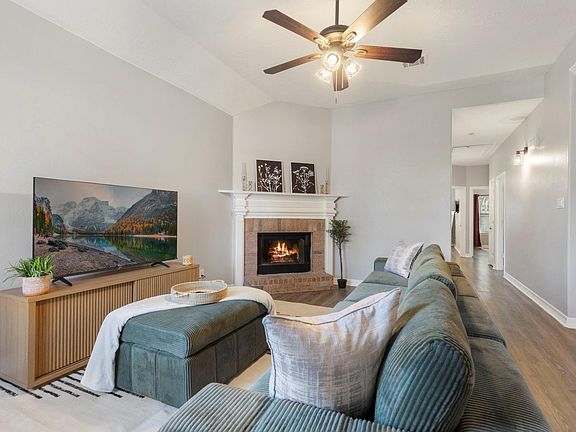 Cozy fireplaceUpdated lightingTwo-car garageVinyl wood flooringStainless steel appliancesDining areaGranite countertops