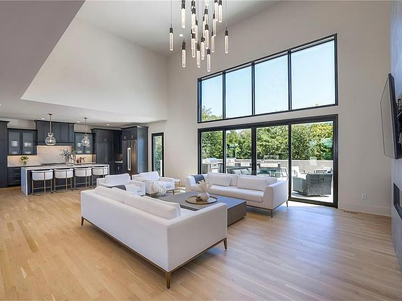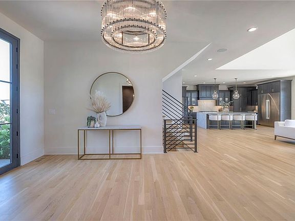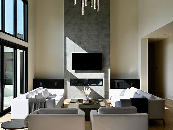 Discover modern elegance in this custom-built 1.5-story home, offering over 5,000 sq. ft. of living space on a private half-acre lot. This residence blends sophisticated design with everyday comfort. Step inside to soaring 20-foot ceilings, a dramatic floor-to-ceiling fireplace, and white oak hardwood floors throughout most of the home. The open main level is filled with natural light and features built-in speakers, Restoration Hardware light fixtures, and a seamless flow into the chef’s kitchen. Here you’ll find LG Signature appliances, quartz countertops, and an oversized walk-in pantry with sink and built-in microwave oven. The main-level primary suite is a retreat of its own with outdoor access, dual walk-in closets, and a spa-like bath with walk-in shower, soaker tub, and modern finishes. A second bedroom with ensuite bath, a dedicated office, large laundry with pet washing station, and an additional powder room complete the first floor. Upstairs offers three oversized secondary bedrooms—each with walk-in closets and ensuite baths—plus a versatile loft perfect for a TV room or office. The lower level is designed for wellness and future expansion, featuring a home gym, built-in infrared sauna, daylight/egress windows to add 2 bedrooms, & stubbed plumbing for an additional bath and bar. The garage is a showstopper in itself, with epoxied floors, tinted glass doors, an electric car charging setup, electric heater, battery backup garage door openers, & built-in cabinets. Step outside to your private backyard oasis—an entertainer’s dream. The sport design pool with automatic cover sits alongside a travertine marble tile patio that stays cool underfoot, a gas fire pit, and an outdoor kitchen loaded with a smoker, pizza oven, wood-fire grill, freezer/fridge, and griddle (all never used). Built-in speakers extend outside as well. Additional highlights include a dual-zone HVAC system, pre-wiring for a generator, & outstanding neighborhood amenities.