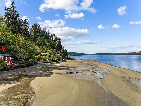 Wonderful 2 bedroom, 1 bath cabin with a spectacular 140' of low bank, Puget Sound waterfront! Beautiful western exposure sand beach when the tide is out and a plethora of interesting views! Blake Island, Southworth ferry terminal, Olympic Mountains & more. Very private 1/3+ acre lot. NO STAIRS on the driveway side! I cannot overstate how gorgeous the sandy beach & views are. Main level features an updated kitchen, gas stove & eating area. Large living room with a freestanding gas stove + access to the view deck. Full bath with a tile enclosure & a washer/dryer combo unit. 2 bedrooms on the lower level and more decking to enjoy the views. Rock bulkhead! Renovated post & block foundation looks great. 3 minutes to the Vashon ferry!