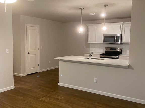 The spacious living area and open-concept kitchen greet you as you enter the property. The high-end countertops turn into a breakfast bar for those quick meals or snacks! There is a dining area right off the kitchen as well.